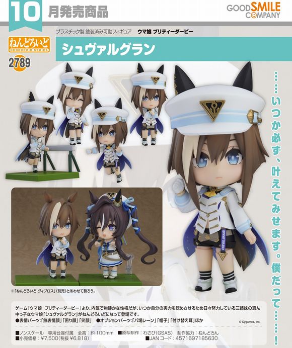 ゲーム『ウマ娘 プリティーダービー』より、内気で物静かな性格だが、いつか自分の実力を認めさせるため日々努力している三姉妹の真ん中っ子なウマ娘「シュヴァルグラン」がねんどろいどになって登場です。
