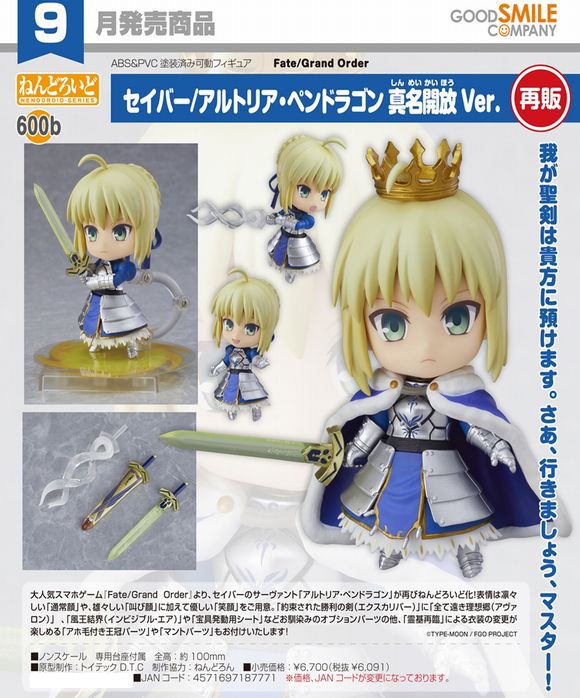 ※No.600「ねんどろいど セイバー/アルトリア・ペンドラゴン」とは一部仕様が異なります。