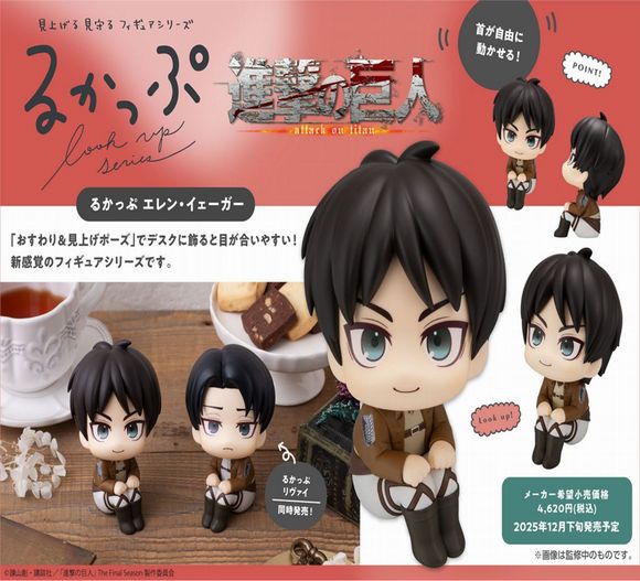 ■ 商品内容:彩色済みフィギュア 見つめる、見上げるフィギュアシリーズ「るかっぷ」にTVアニメ『進撃の巨人』より「エレン・イェーガー」が登場です。「るかっぷ」は「look up(見上げる)」を元にした造語で、あなたを見上げて見つめているような、可愛い仕草が特徴の人気フィギュアシリーズです。 「見上げ&おすわりポーズ」で、デスクの上などに飾ったとき、通常のフィギュアと比べて目が合いやすくなっています。 ■商品サイズ 全高約110mm (C)諫山創・講談社/「進撃の巨人」The Final Season製作委員会 ※画像はイメージです。 ※商品の写真・イラストは実際の商品と一部異なる場合がございますのでご了承ください。