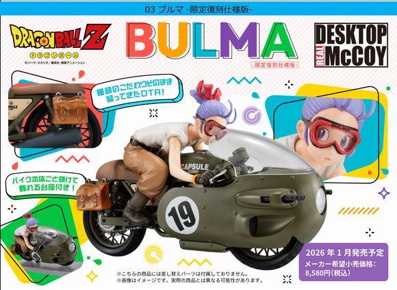 ■ 商品内容:彩色済みフィギュア1体、台座 ドラゴンボールZより、「DESKTOP REAL McCOY(デスクトップリアルマッコイ)」シリーズの03 ブルマが約10年ぶりの再登場! 独特の形をしたバイクとブルマが人気の扉絵を、脅威のクオリティで立体再現。小物の隅々に至るまで造形力を注ぎ込み、さらに、台座にはバイク本体ごと傾けて飾ることのできる機構を搭載した、遊び心あふれる逸品となっております。 ※こちらの商品には差し替え顔パーツは付属しません。 ■商品サイズ 全長約160mm (C)バードスタジオ/集英社・フジテレビ・東映アニメーション ※画像はイメージです。 ※商品の写真・イラストは実際の商品と一部異なる場合がございますのでご了承ください。