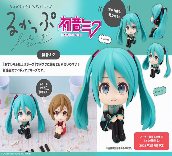 今大注目の「るかっぷ」シリーズに「初音ミク」が登場です! るかっぷは「look up」を元にした造語で、見上げ&おすわりポーズが特長の人気フィギュアシリーズです。デスクの上などに飾ったとき、通常のフィギュアと比べて目が合いやすくなっています。 同時発売の「MEIKO」と一緒に並べると、より世界観が広がります。