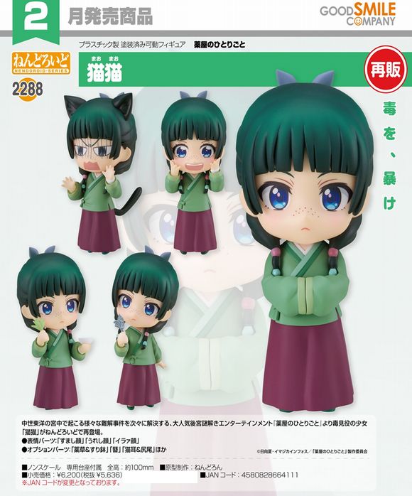 中世東洋の宮中で起こる様々な難解事件を次々に解決する、大人気後宮謎解きエンターテインメント『薬屋のひとりごと』より毒見役の少女「猫猫」がねんどろいどで再登場。