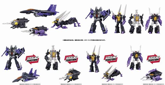 好評のDramatic Capture Seriesの第六弾は、ディセプティコンの精鋭たち、スカイワープとキックバック、シャープネル、ボンブシェルをセットにした「ディセプティコンズ part2」だ。スカイワープは、ディセプティコンの航空部隊シーカーズに所属しており、ジェット機に変形する航空兵である。キックバック、シャープネル、ボンブシェルの3体は、独立部隊インセクティコンに所属しており、ずる賢く貪欲な性格で恐れられている。それぞれバッタ、クワガタムシ、カブトムシに変形する。各種武器の他に、劇中で印象的だった、メガトロン、ショックウェーブ、サウンドウェーブ、リフレクターそれぞれのオルトモードを再現した小型アクセサリーも付属する。