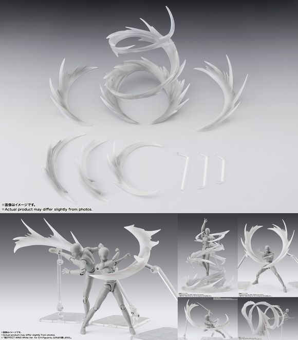 巻き上がる風を再現した魂EFFECTがホワイトカラーで登場! 汎用性の高い「白い風」が魂EFFECTに登場!人気のシリーズに、激しく渦を描きながら巻き上がる風をイメージした「魂EFFECT WIND」がラインナップ!大小様々なパーツを組み合わせることで、多様なシーンを彩ることが可能。各パーツに開いている穴を利用することで、魂STAGE(別売り)を用いて浮かせることができる。 ※本商品にフィギュアと台座一式は付属しません。 ■商品詳細 価格 3,300円(税10%込) 3,000円(税抜) 発売日 2026年05月 対象年齢 15才以上 ■商品仕様 全高 約150mm 材質 PVC、ABS製 ■セット内容 ・パーツA ・パーツB ・パーツC ・パーツD ・パーツE ・パーツF (C)BANDAI SPIRITS ※試作品を撮影した画像です。 実際の商品とは異なる場合がございます。