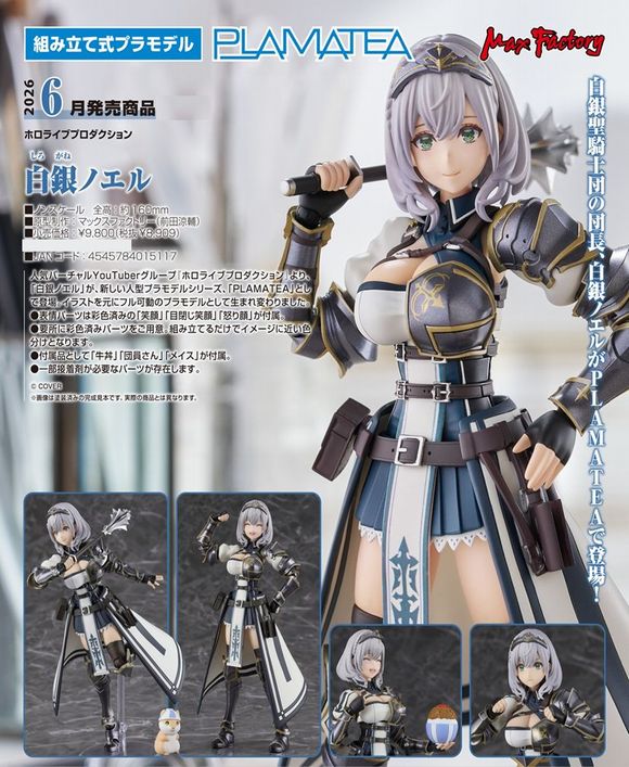 人気バーチャルYouTuberグループ『ホロライブプロダクション』より、「白銀ノエル」が、新しい人型プラモデルシリーズ、「PLAMATEA」として登場。イラストを元にフル可動のプラモデルとして生まれ変わりました。