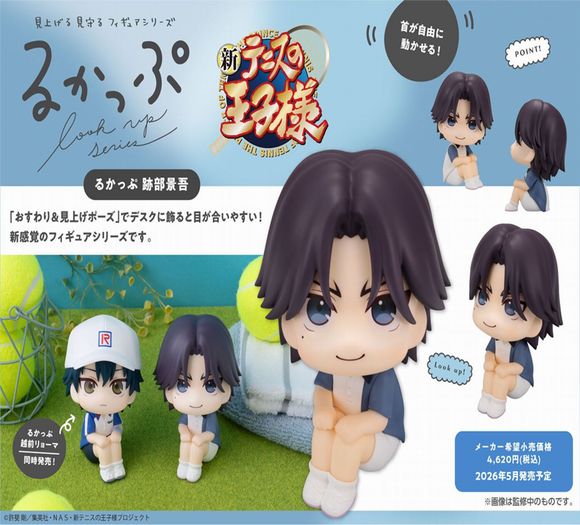 るかっぷシリーズより「跡部景吾」が登場です!「るかっぷ」は「look up(見上げる)」を元にした造語で、あなたを見上げて見つめているような仕草が特長の人気フィギュアシリーズです。 「見上げ&おすわりポーズ」で、デスクの上などに飾ったとき、通常のフィギュアと比べて目が合いやすくなっています。首は可動で表情をつけて楽しむことができ、全高約110mmでボリューム感もたっぷりです。 お部屋に飾れば、跡部様がそこにいるかような存在感を楽しめます。「越前リョーマ」「跡部景吾」が同時発売で、一緒に並べると世界観が広がります。