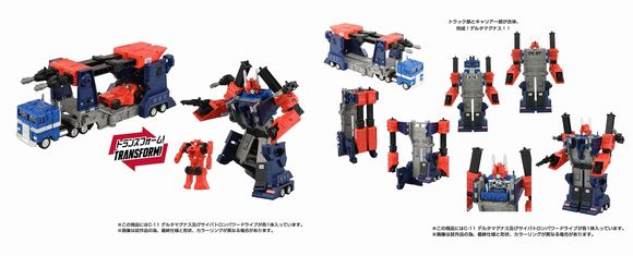 ウルトラマグナスの元となったダイアクロン「パワードコンボイ」のカラーリングであり、トランスフォーマー・ザ・ムービーのパイロットフィルムにも登場したことで知られるアーリーカラーが、先遣指揮官デルタマグナスとして、数々の機能を備えミッシングリンクで登場。トラック部にあたるコンボイ型ロボットは同シリーズC-01のコンボイに一部新規パーツを追加しキャリアー部との合体機構に対応させたもので、一部にダイキャストを使用した構成はそのままに、合体状態においても可動式の各部関節で自由にポージングを付けることが可能になりました。カーキャリアのカーモードには別売りのミッシングリンク商品を複数搭載できるほか、整備基地・指令基地・移動作戦基地などの当時商品と同様の多彩なフォーメーションにも変形可能です。