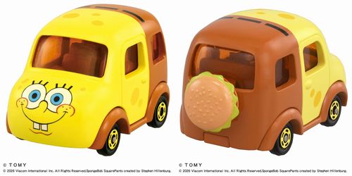 ドリームトミカに「スポンジ・ボブ」が登場! 「スポンジ・ボブ」がトミカになった!リア部分にはリアタイヤの代わりに"カーニバーガー"が付いています。 <アクション>サスペンション ? TOMY ? 2026 Viacom International Inc. All Rights Reserved. Nickelodeon, SpongeBob SquarePants and all related titles, logos and characters are trademarks of Viacom International Inc. SpongeBob SquarePants created by Stephen Hillenburg.