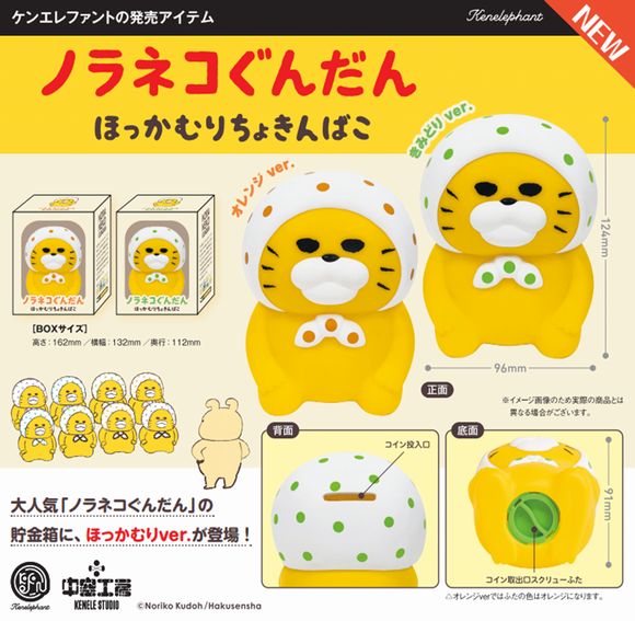 シリーズ累計500万部突破の大人気絵本、『ノラネコぐんだん』の貯金箱にほっかむりver.が登場! 「ノラネコぐんだん」は?藤ノリコさんが描く、白泉社(コドモエのほん)より刊行されている人気絵本シリーズです。2022年に10周年を迎え、シリーズ累計500万部を突破しています。「はんせいちょきんばこ」に続き、今回はほっかむりをしたノラネコぐんだんを再現。?藤ノリコさんが描くイラストの世界観を大切に、愛らしいフォルム、カラーリングにこだわって開発しました。会社のデスクや自宅のリビングなど、いろんなところに飾って、「ノラネコぐんだん」と一緒に過ごすことができるアイテムです。 対象年齢12歳以上 サイズ:H124?W96×D91mm (C)Noriko Kudoh/Hakusensha 企画制作・発売元:株式会社ケンエレファント ・掲載の画像は開発中サンプルのため、実際の商品と多少異なる場合があります。