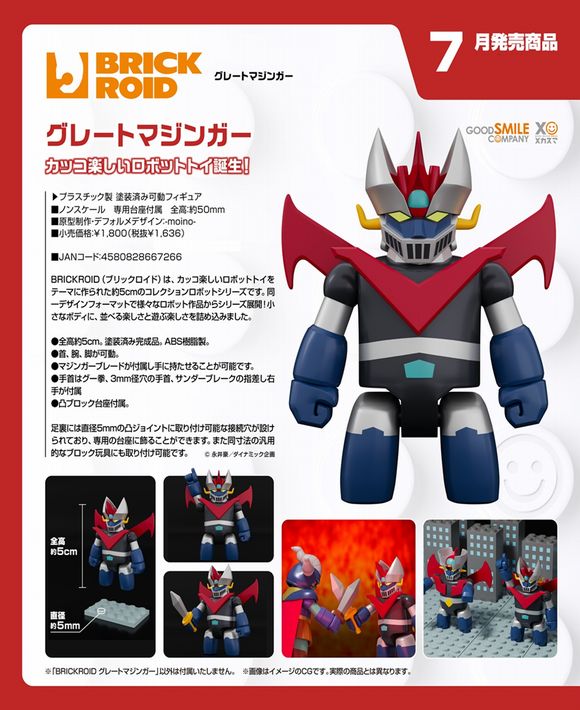 BRICKROID(ブリックロイド)は、カッコ楽しいロボットトイをテーマに作られた約5cmのコレクションロボットシリーズです。同一デザインフォーマットで様々なロボット作品からシリーズ展開!小さなボディに、並べる楽しさと遊ぶ楽しさを詰め込みました。