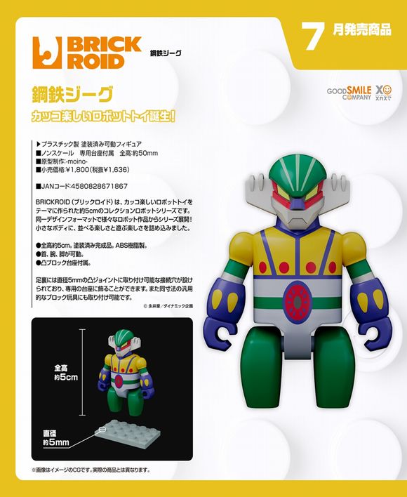 BRICKROID(ブリックロイド)は、カッコ楽しいロボットトイをテーマに作られた約5cmのコレクションロボットシリーズです。同一デザインフォーマットで様々なロボット作品からシリーズ展開!小さなボディに、並べる楽しさと遊ぶ楽しさを詰め込みました。