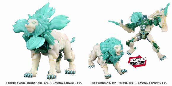 アニメ「ビーストウォーズ?」から、長年商品化を待望されていた伝説の緑のライオンの姿をしたライオコンボイが登場! 本体は蓄光素材を使用しており、アニメ本編シーンのように緑色に光る姿が再現可能!