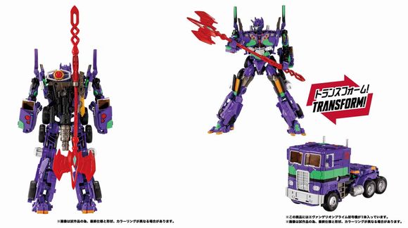 オプティマスプライムがエヴァンゲリオン初号機の特徴的な意匠とカラーを身にまとい、「エヴァンゲリオンプライム初号機」となって登場。ロボットモードからトラックタイプのビークルモードに完全変形。ロボットモードは各関節が可動するフルポーザブル仕様で、様々なポージングが可能。エヴァンゲリオン初号機の武器をモチーフにしたアクセサリーが付属。付属のアクセサリーは背部マウントユニットを介して、本体背面に取り付けが可能。胸部パネルを開くことで、内部のコアが露出。コア部分は取り外して、付属のコアマトリクスに取り付けが可能。コアマトリクスを掲げるポージングも可能。