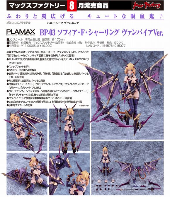 高峰ナダレ氏のオリジナル作品『バニースーツ プランニング』より、ソフィアが可憐でセクシーなヴァンパイア装備に身を包みPLAMAXに登場!