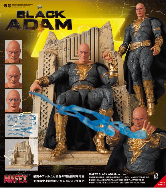 最高のフォルムと抜群の可動領域を両立! 史上最強のアクションフィギュア! 2026年2月発売予定 マフェックス No.286 MAFEX BLACK ADAM (GOLD SUIT) 参考小売価格¥16,280(税込) 頭部原型製作 島崎恭一 原型製作 PERFECT-STUDIO 彩色 アートスピリッツ & PERFECT-STUDIO ●全高約165mm ●「BLACK ADAM」がGOLD SUIT Ver. MAFEXで登場! ●頭部パーツ3種/各種エフェクトパーツ/玉座/可動式フィギュアスタンド付属! ※監修中のサンプルを撮影しております。 発売商品とは異なる場合がございます。 BLACK ADAM and all related characters and elements (C) & TM DC and Warner Bros. Entertainment Inc. (s25)