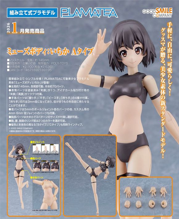 PLAMATEAに可動美少女プラモデル素体「ミューズボディ:いちか」が登場!