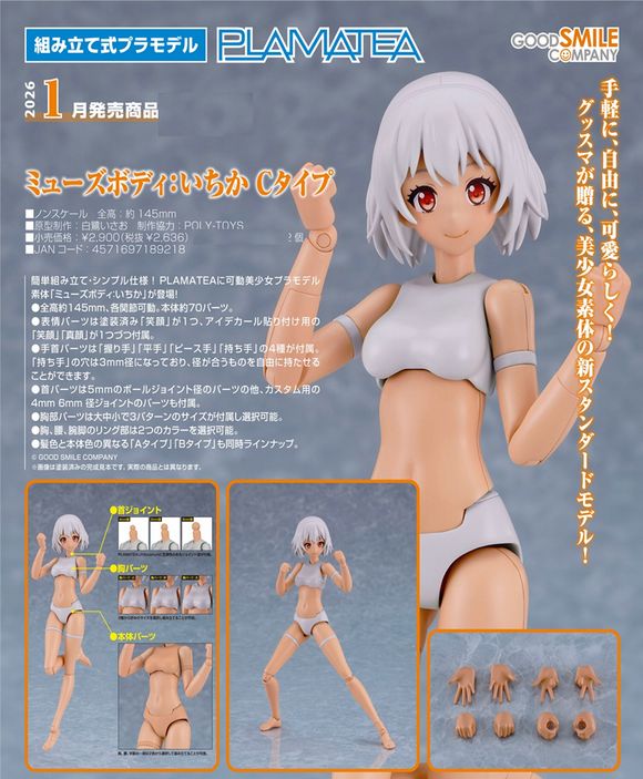 PLAMATEAに可動美少女プラモデル素体「ミューズボディ:いちか」が登場!