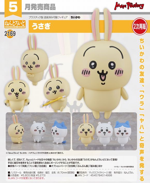 楽しくて、切なくて、ちょっとハードな日々の物語『ちいかわ』から、ちいかわの友達「うさぎ」がねんどろいどになって登場!手足に磁石を使用することで違和感なく自由にポージングすることが可能です。