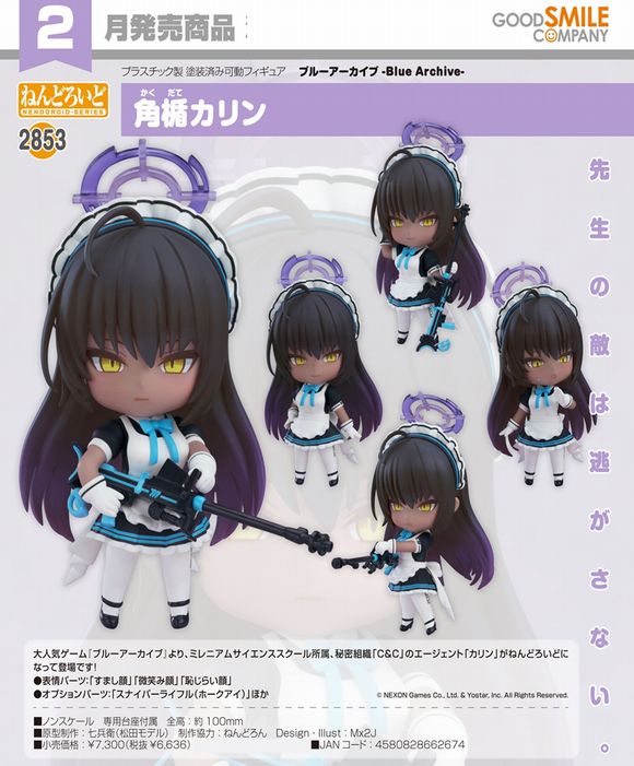 大人気ゲーム『ブルーアーカイブ』より、ミレニアムサイエンススクール所属、秘密組織「C&C」のエージェント「カリン」がねんどろいどになって登場です!