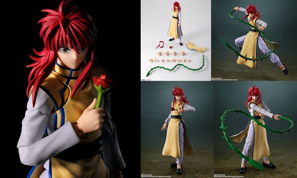 暗黒武術会編に登場した、対戸愚呂チームとの戦闘時の衣装の「蔵馬」が、S.H.Figuartsに初登場。優雅に立ち振る舞う姿を追求。そして戦闘中の躍動感のある姿が再現可能なオプションパーツの「ローズウィップ」も付属。植物を武器にする蔵馬らしい薔薇や持ち手も付属しており、別売りの「S.H.Figuarts 浦飯幽助」の泣き顔ボーナスパーツで劇中のシーンも再現可能に。
