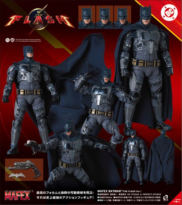 最高のフォルムと抜群の可動領域を両立! 史上最強のアクションフィギュア! 2026年8月発売予定 マフェックス No.293 MAFEX BATMAN (THE FLASH Ver.) 参考小売価格¥14,080(税込) 頭部原型製作 島崎恭一 原型製作 SH STUDIO & PERFECT-STUDIO ●全高約160mm ●MAFEXに映画『THE FLASH』より「BATMAN」が登場! ●頭部パーツ3種/各種武器パーツ/布製マント/可動式フィギュアスタンド付属! ※監修中のサンプルを撮影しております。 発売商品とは異なる場合がございます。 THE FLASH and all related characters andelements (C) & TM DC and Warner Bros.Entertainment Inc. (s25)