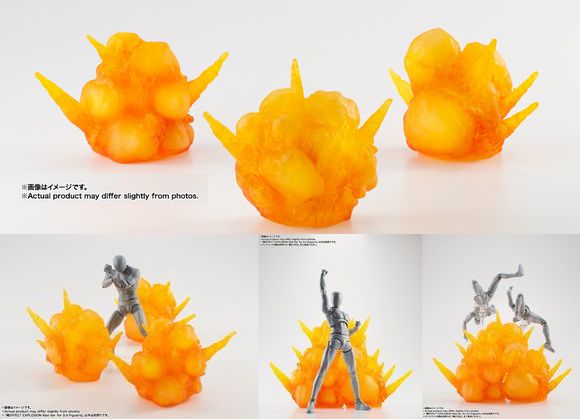 激しい爆発を再現したエフェクトパーツが登場! 魂EFFECTに爆発の瞬間を再現したEXPLOSIONが登場。ヒーローの登場シーンや、戦闘中を再現可能。形状が違う小さい爆発は魂STAGE(別売り)と組み合わせることで大きな爆発にすることが可能。爆発パーツは3種セット。 ※本商品にフィギュアは付属しません。 ■商品詳細 価格 3,300円(税10%込) 3,000円(税抜) 発売日 2026年08月 対象年齢 15才以上 ■商品内容 全高 約100mm 材質 ABS、PVC製 ■セット内容 ・爆発エフェクト3種 (C)BANDAI SPIRITS ※試作品を撮影したものです。 実際の商品とは異なります。
